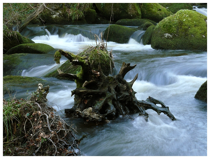 racine, coincée contre une roche polie par le temps, semble vouloir nous convier à un carnaval...